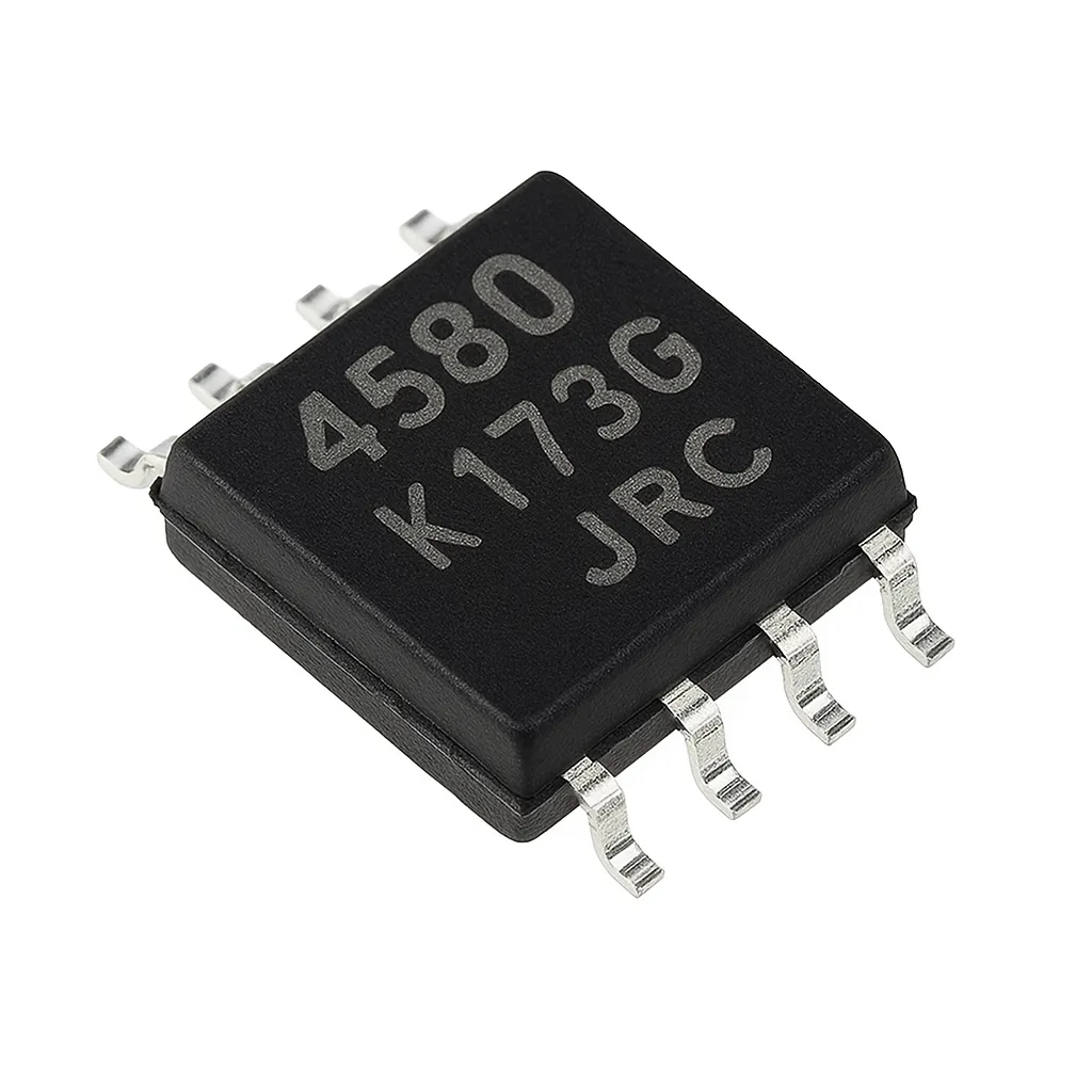 آیسی 4580 SMD یا JRC4580 OP-AMP یک تقویتکننده عملیاتی (Operational Amplifier) دو کاناله با نویز بسیار پایین و پهنای باند بالا است که در مدارهای صوتی، آمپلیفایرها، میکسرها و دستگاههای صوتی حرفهای کاربرد فراوان دارد.