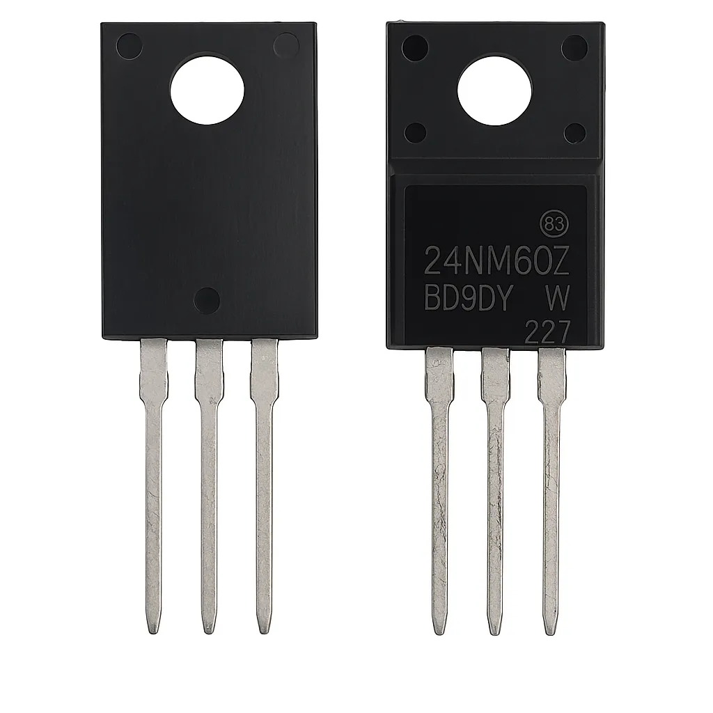 ترانزیستور 24NM60Z یک MOSFET قدرت با راندمان بالا و تحمل ولتاژ 600 ولت و جریان 24 آمپر است که در پکیج کاملاً ایزوله TO-220F عرضه میشود. این مدل یکی از MOSFETهای پرکاربرد در صنایع برق، تعمیرات پاور صنعتی و تجهیزات سنگین سوئیچینگ بهشمار میرود.