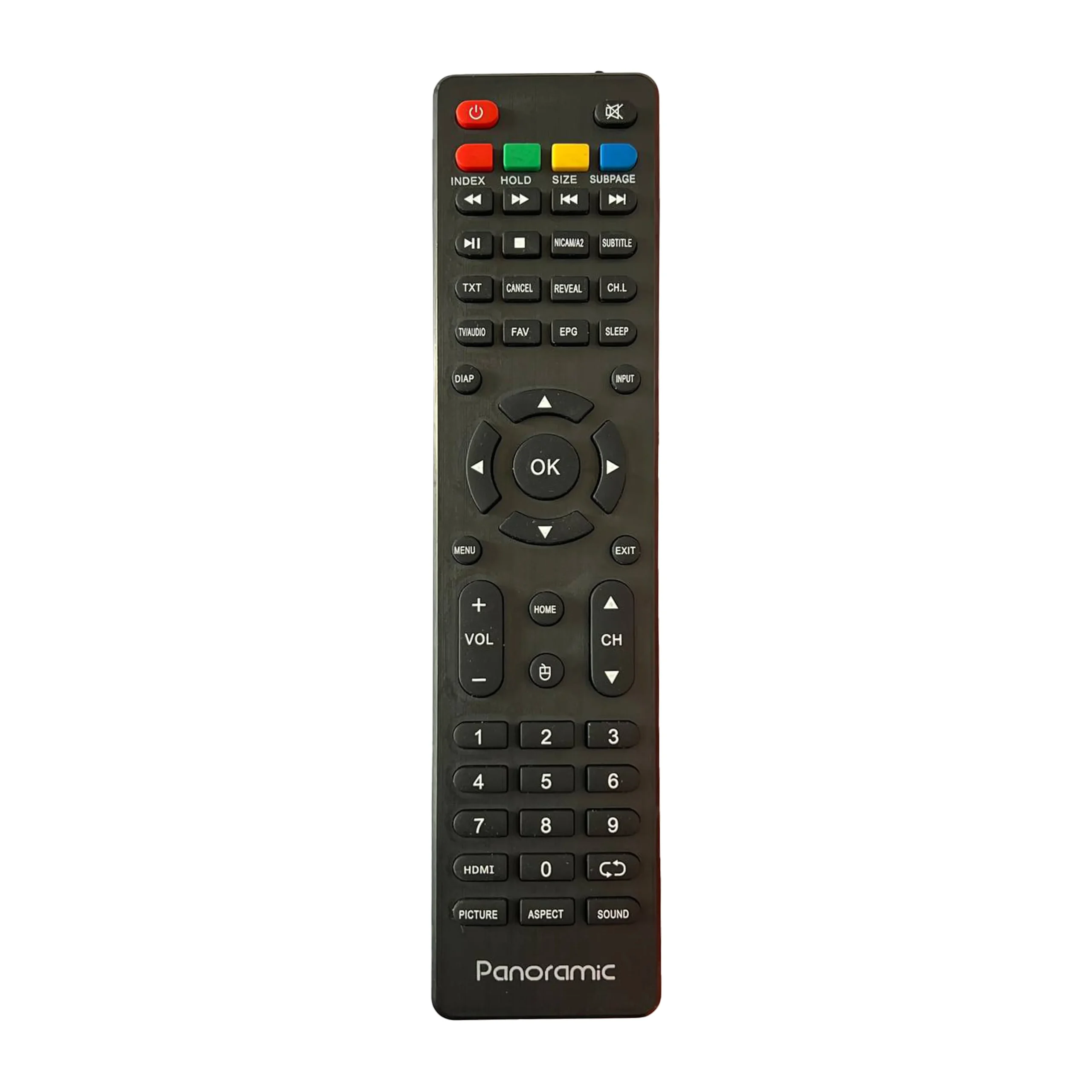 کنترل تلویزیون پانورامیک تخت 5 ردیف ، جنس قاب و دکمه ها از مواد نو درجه یک ، دارای مدار الکترونیکی آیسی دار ضخیم جهت پرتاب بهتر فرکانس از فاصله ی دور و مقاومت بیشتر در مقابل ضربه ، باطری قابل استفاده روی این کنترل دو عدد نیمه قلمی میباشد .