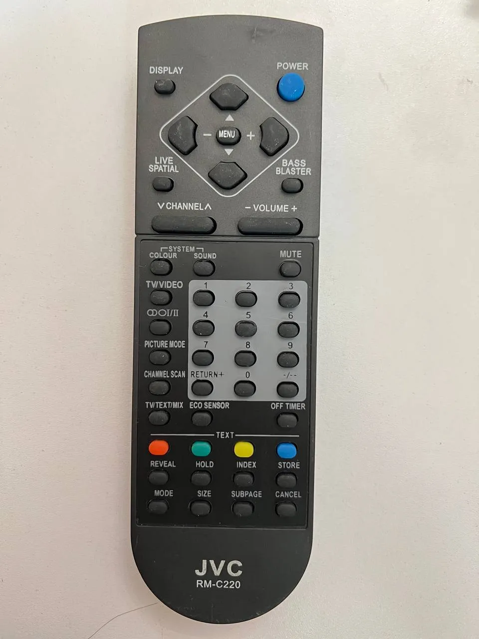 کنترل تلویزیون JVC 220 ، جنس قاب و دکمه ها از مواد نو درجه یک ، دارای مدار الکترونیکی ضخیم آیسی دار جهت پرتاب بهتر فرکانس از فاصله ی دور و مقاومت بیشتر در مقابل ضربه ، باطری قابل استفاده روی این کنترل دو عدد نیمه قلمی میباشد .