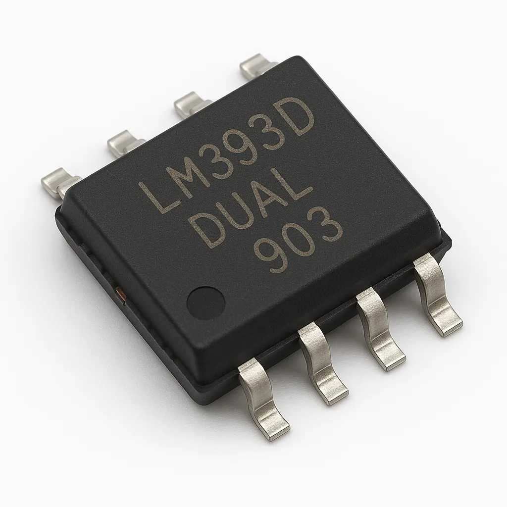 آی‌سی LM393 یک مقایسه‌کننده دوگانه (Dual Comparator) با عملکرد دقیق و مصرف پایین است. این تراشه در بسته‌بندی SMD نوع SOD-8 عرضه می‌شود و گزینه‌ای عالی برای مدارهای الکترونیکی حساس به ولتاژ و کاربردهای اندازه‌گیری است.