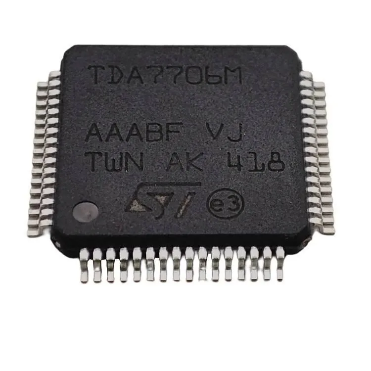 آیسی TDA7706M یکی از پرکاربردترین و پیشرفتهترین چیپهای تیونر (Tuner IC) ساخت شرکت STMicroelectronics است که در سیستمهای صوتی خودرو، گیرندههای رادیویی و تجهیزات چندرسانهای بهکار میرود. این آیسی با فناوری SMD (نصب سطحی) طراحی شده و عملکردی پایدار، دقیق و با نویز بسیار پایین ارائه میدهد.